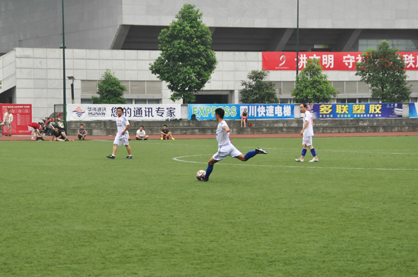 在3名主力球員出差缺陣的情況下,我們的球隊(duì)面對(duì)實(shí)力強(qiáng)勁的蛟龍港沒(méi)有絲毫怯意,開(kāi)場(chǎng)后兩隊(duì)都踢得很謹(jǐn)慎,皮球來(lái)回傳運(yùn),雖然都有射門機(jī)會(huì),但是都被門將拒之門外。終于在上半場(chǎng)第28分鐘,這種僵持的狀況被我方率先打破。得到前場(chǎng)任意球的機(jī)會(huì),我方球員邊路拿球送給后插上的6號(hào),6號(hào)得球形成單刀,面對(duì)門將輕松推射得手,1比0,這粒進(jìn)球讓身高腿長(zhǎng)的蛟龍港隊(duì)有些亂了陣腳,帶著領(lǐng)先優(yōu)勢(shì)的我方球員士氣大振,占據(jù)場(chǎng)上的進(jìn)攻主動(dòng)權(quán),1比0的比分一直維持到上半場(chǎng)結(jié)束。