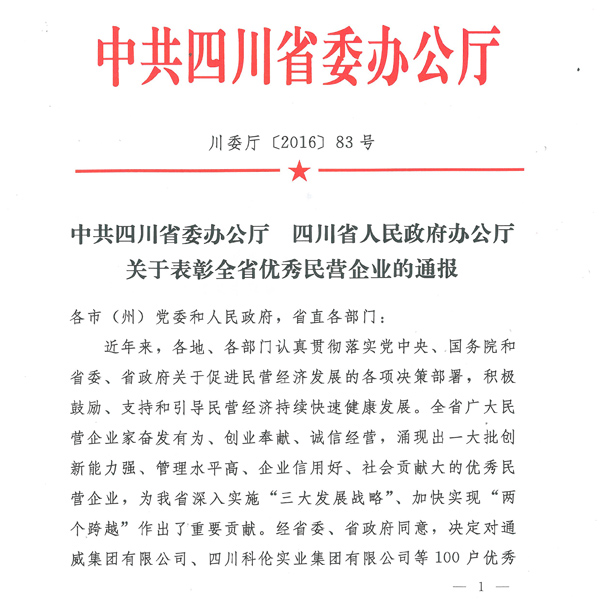 熱烈祝賀川開實(shí)業(yè)集團(tuán) 榮獲“2016四川省優(yōu)秀民營企業(yè)”榮譽(yù)稱號
