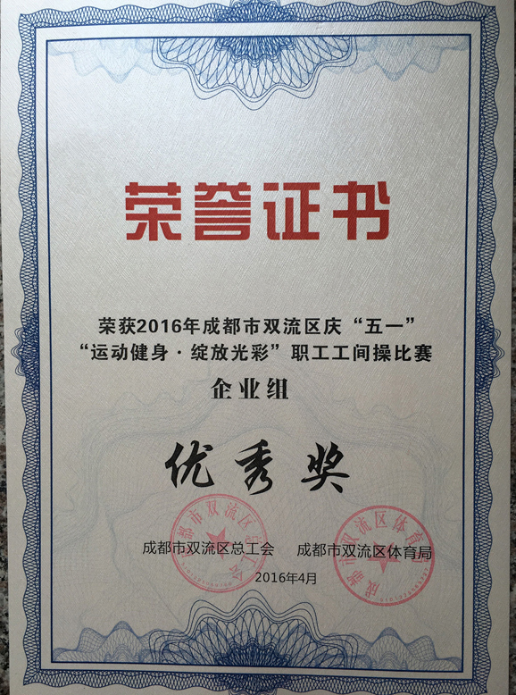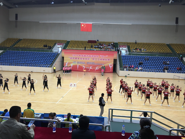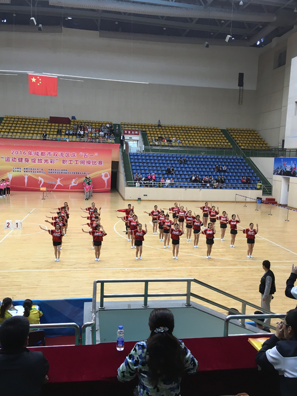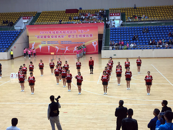 2016年4月22日,集團(tuán)28名年輕員工一早興致勃勃乘車(chē)前往雙流體育館參加雙流區(qū)總工會(huì)、雙流區(qū)體育局舉辦的2016年雙流區(qū)慶“五一”“運(yùn)動(dòng)健身 綻放光彩”職工工間操比賽。