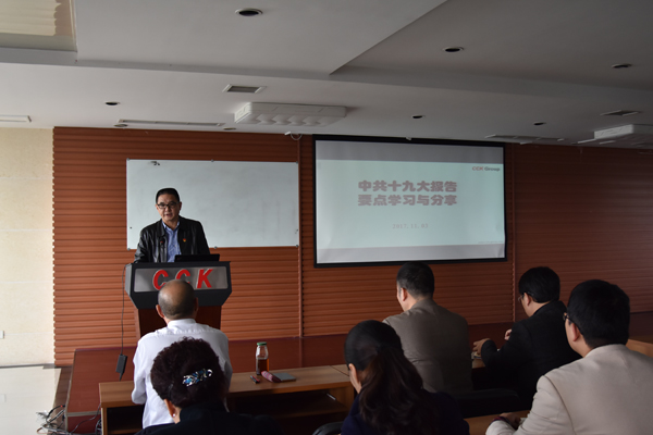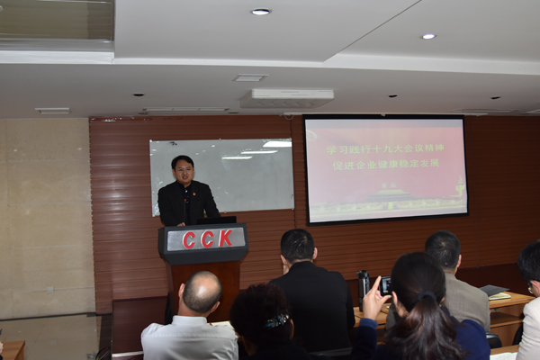 集團(tuán)黨委委員、總裁姜磊結(jié)合十九大精神,做了學(xué)習(xí)領(lǐng)會(huì)十九大關(guān)于民營(yíng)經(jīng)濟(jì)發(fā)展的論述,以及民營(yíng)企業(yè)未來(lái)的轉(zhuǎn)型發(fā)展路徑等方面做了詳細(xì)的講解。