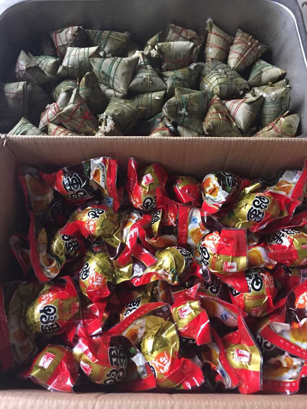 粽子香,香廚房;艾葉香,香滿堂;桃枝插在大門上,出門一望麥兒黃。端午節(jié)前夕,集團(tuán)工會(huì)采購(gòu)了粽子和咸鴨蛋作為節(jié)日禮物在職工食堂門口發(fā)放給前來(lái)就餐的員工。今天雖然下著大雨,但是員工們個(gè)個(gè)笑容滿面的領(lǐng)取了粽子,這粽子里寄寓的“祥和、甜美、幸?!保嘈琶恳粋€(gè)員工都品嘗得出來(lái)。